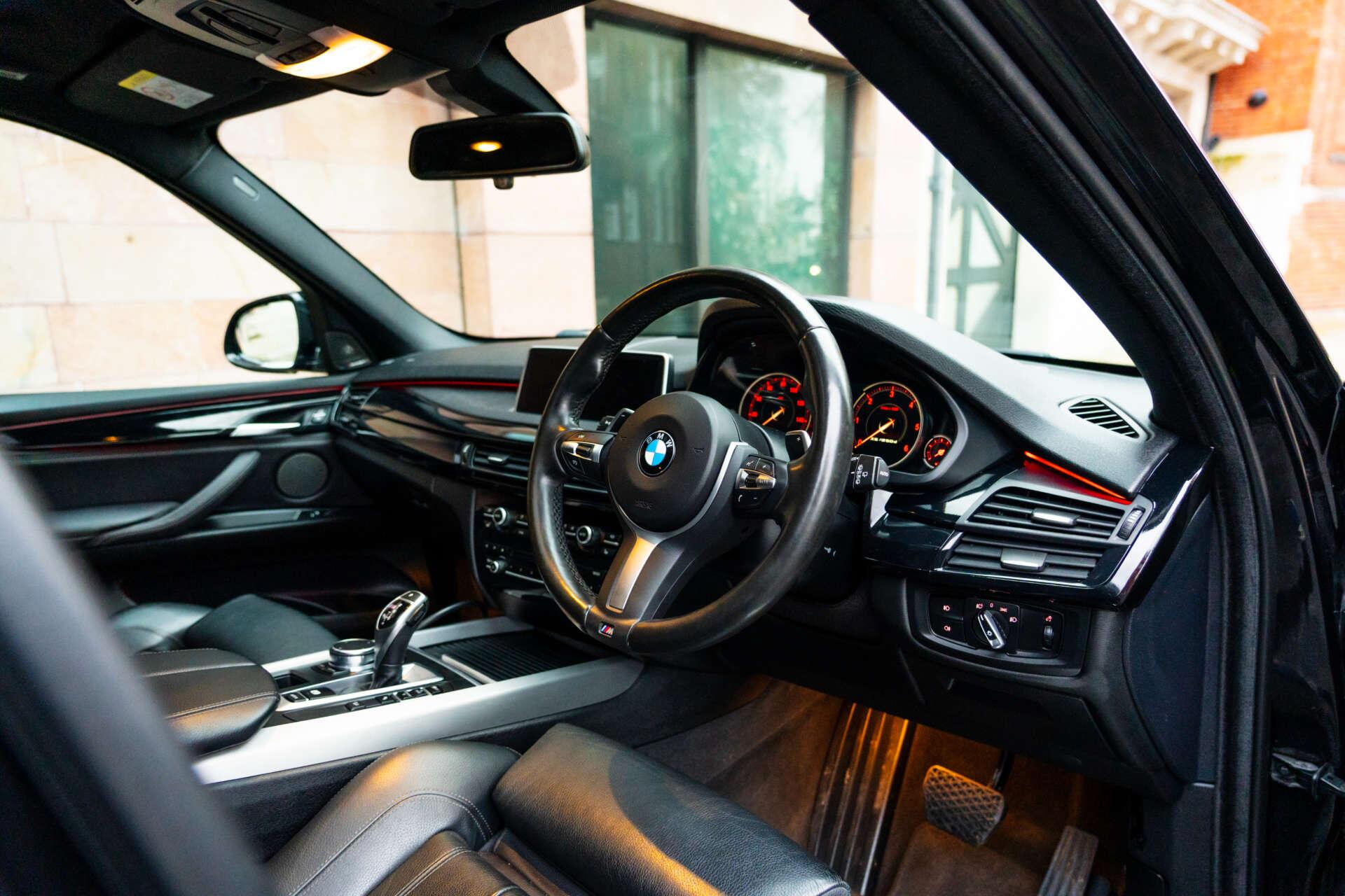 V12 Automobil are delighted to offer this stunning and very sought after 2018 Black Sapphire metallic 3.0 X5 M50D with 3rd row seating (7 seats) with just 42k miles from new. This 381bhp X5 benefits from a light body kit making this really stand out from the crowd, along with unmarked 22" Multi spoke alloy wheels finished in satin black. A beautiful example with full service history and an excellent factory specification, these options over the already heavily spec'd M50D from factory include: Towbar - Electric, Steering Wheel Heated, Adaptive Dynamic Suspension, Reverse camera, Loudspeaker System - Harman Kardon, Panoramic Glass Sunroof, Sun Protection Glazing, Heated front & rear seats, Headlights Adaptive LED, Light package, Driving Assistant Plus, Head-Up Display, Remote control, Speed Limit Display, Multi function instrument display, Third-Row Seating, 22" Multi spoke alloys, 22in Alloy Wheels Multi-Spoke, Digital Cockpit, Headlining Alcantara, Interior Trim Fine Brushed Aluminium, Seat Heating - Rear, Black Sapphire Metallic, Auxiliary Heating with Remote Control, Dakota Leather Black with Black Interior and much more .