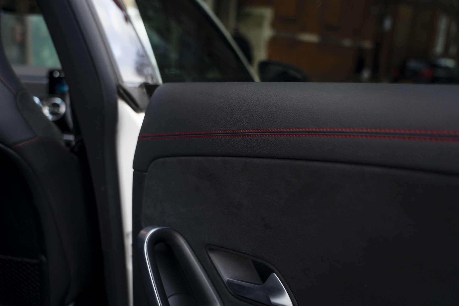 ARTICO Man-Made Leather-MICROCUT Microfibre - Black with Contrasting Topstitching in Red